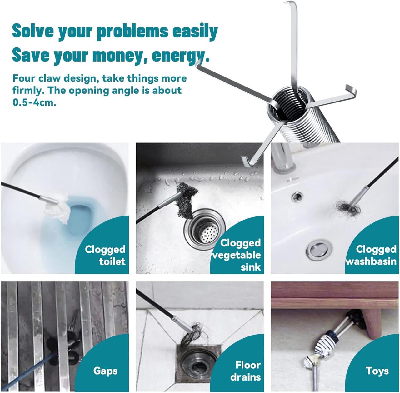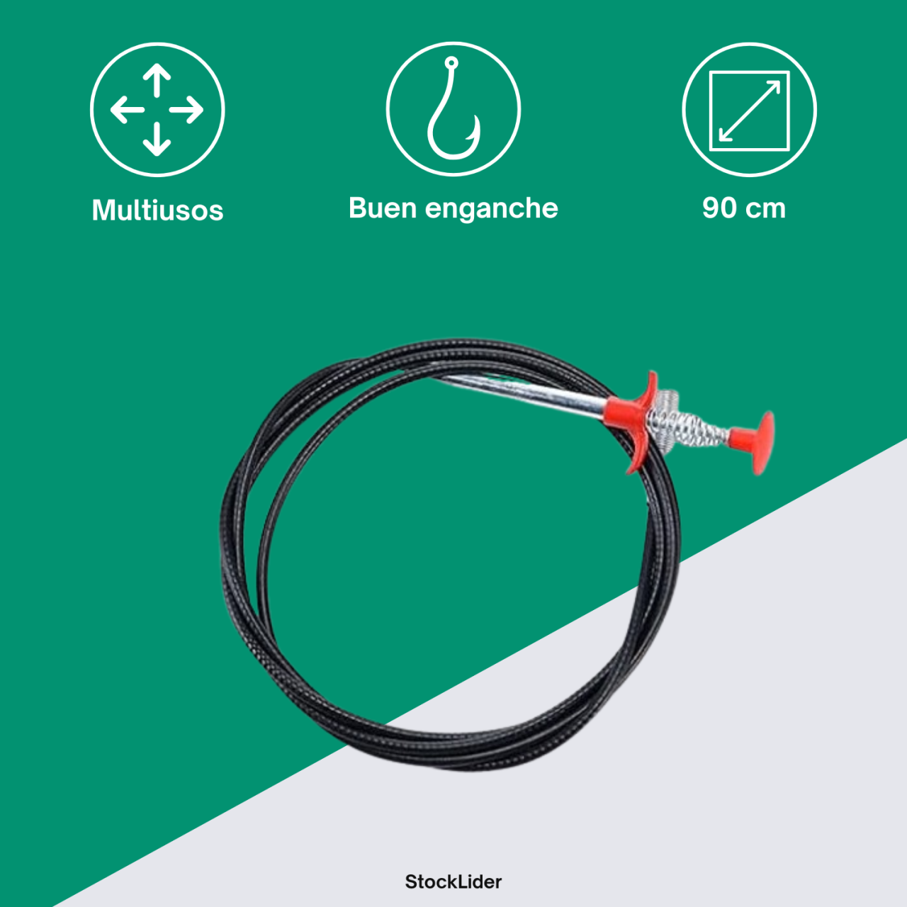 Flexible y retráctil: La herramienta es flexible y cuenta con una garra retráctil, lo que facilita el acceso al interior de tuberías y desagües para desatascar obstrucciones.