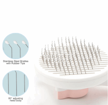 - O design ergonómico e antiderrapante do cabo garante uma aderência confortável e segura durante todo o processo de escovagem. Também incorporamos tecnologia antiestática para minimizar a acumulação de eletricidade estática, prevenindo o frisado e o desconforto para os seus animais de estimação.